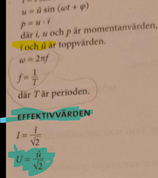 Förstår ej. Så U_hatt är effektivvärde och U är toppvärde?
