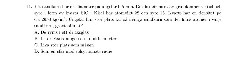 Hur stor plats tar antalet sandkorn som det finns atomer i ett sandkorn?