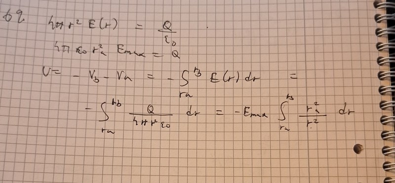 Menar du att man ska räkna ut E-fält mellan radierna ra och rb som det visas i figuren? Jag antar att man inte ska fokusera på r<ra och r>rb?