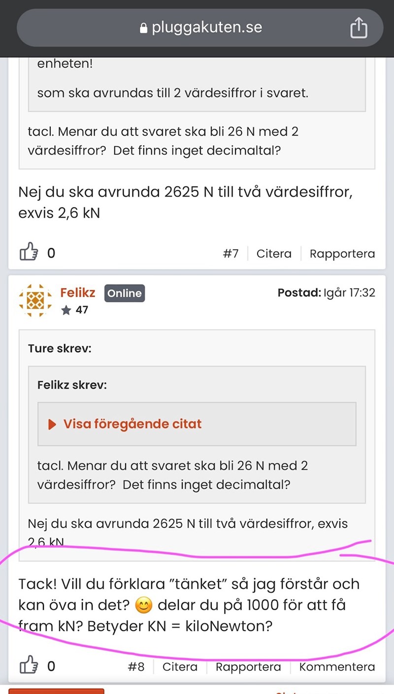 Tack! Vill du förklara ”tänket” så jag förstår och kan öva in det? 😊 delar du på 1000 för att få fram kN? Betyder KN = kiloNewton?