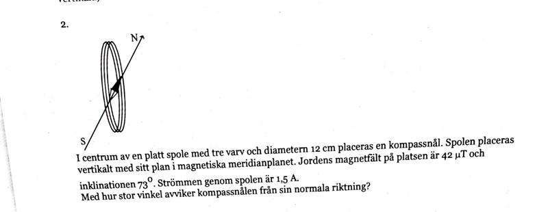 Hur stor vinkel avviker kompassnålen från sin normala riktning?
