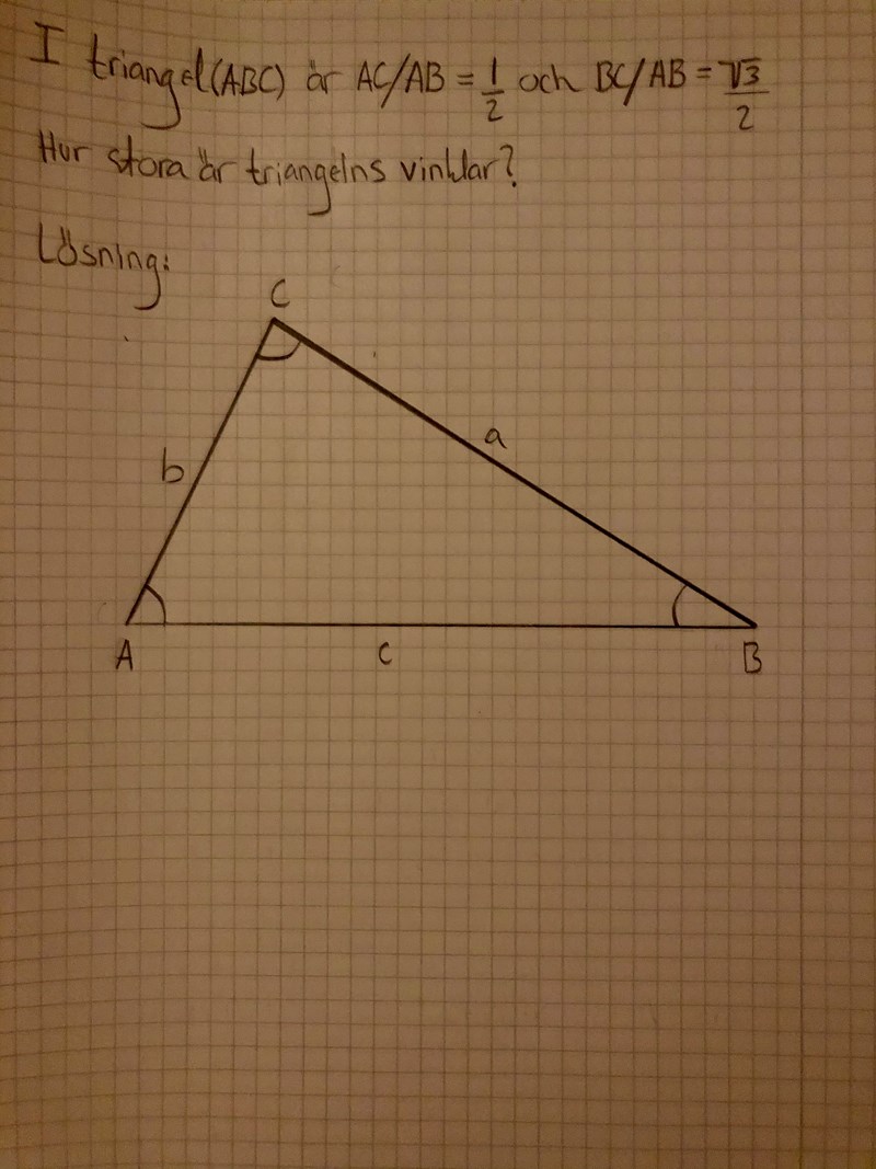 Jag förstår ej hur jag ska tillämpa cosinussatsen. Vad menas med exempelvis AC/AB = 0,5. Vad är det som blir 0,5?