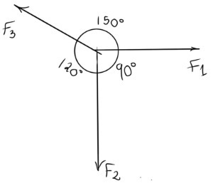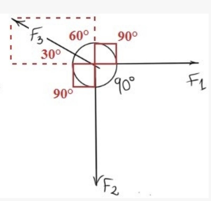Vad har kraften F3 för vinkel mot vertikalen? Dess komponent i vertikal led måste vara lika stor som F2, eller hur?