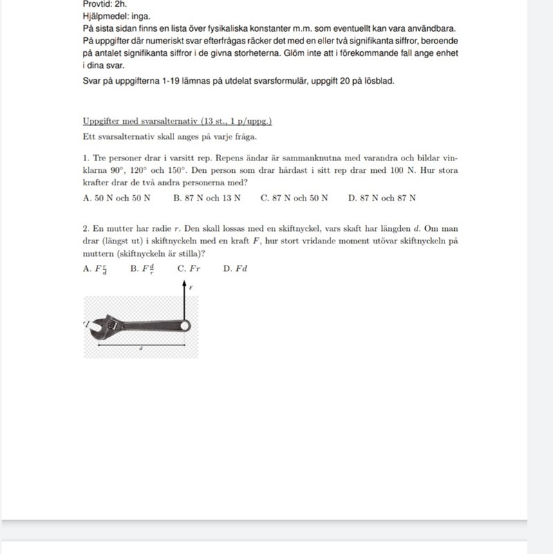 Jag har ingen idé om hur man ska tänka på uppgift 1. Någon ledtråd? Ska man rita en rätvinklig triangel och använda trigonometri för att få ut övriga krafter?