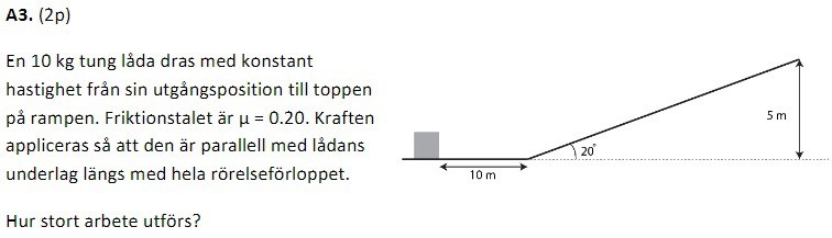 Smaragdalena skrev:Vad kan man säga om summan av alla krafter som verkar på lådan, om man vet att lådans hastighet är konstant?