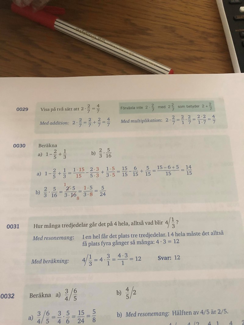 Syftar på den första uppgiften. Det är fel ändå fel att ta addition när det är multiplikation. Och hur i hela friden får dem att 2 * 2/7 = 2/7 + 2/7. Om dem ändå ska ta plus ska det inte bli 2/1 + 2/7 eller 14/7 + 2/7