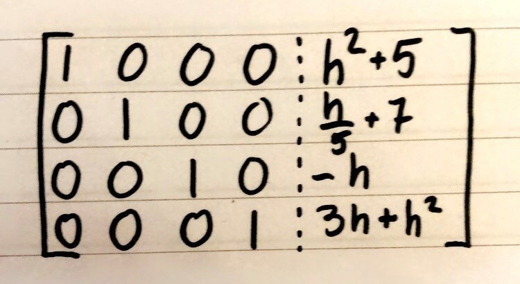 Om h däremot är avsett att parametrisera ett rum av lösningar till ett system vars matris endast hade siffror så har något gått fel i lösningen.