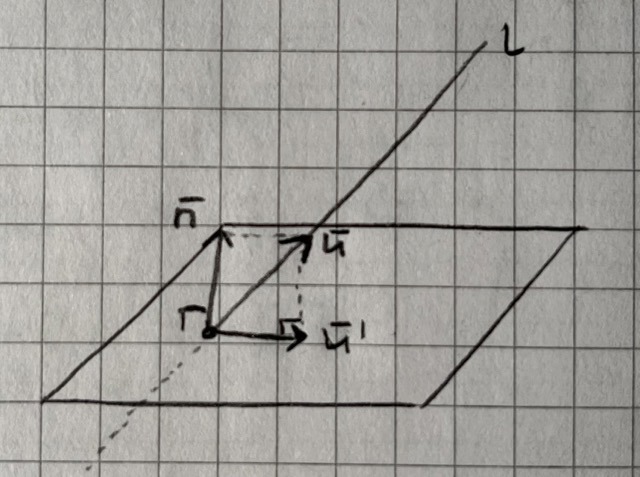 Jag ser det som att man mer eller mindre komposantuppdelat vektorn u i en normerad normalvektor och en vektor u' som uppstår när man projicerar vektorn ortogonalt mot planet. Är detta korrekt tänkt? :)