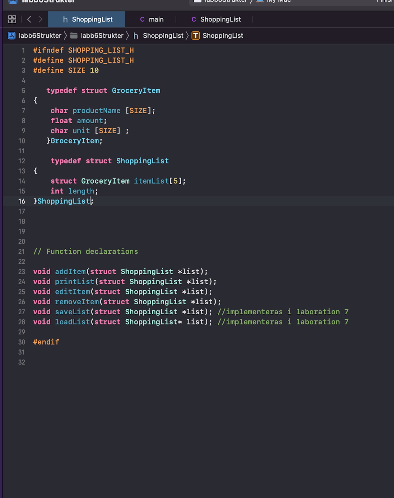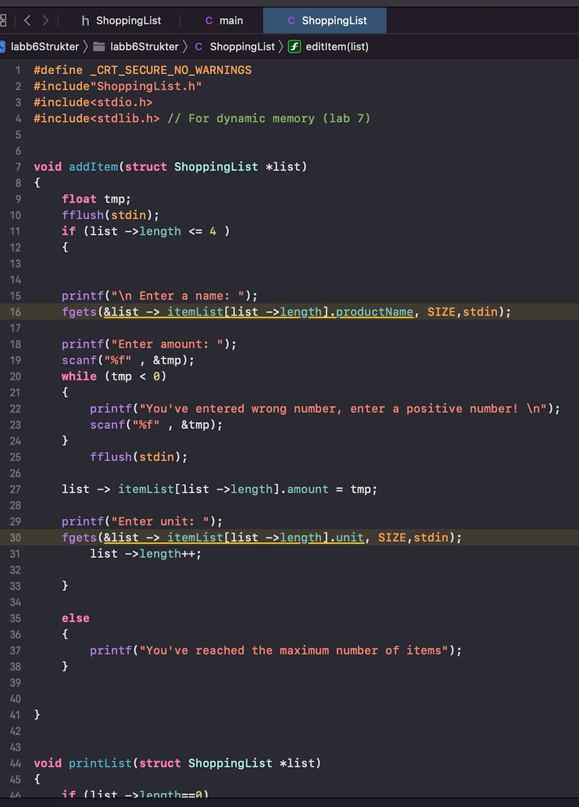 Sedan läser du in nya värden för amount och unit och sparar dem i list->itemList[N]. Koden blir väldigt lik den från addItem().