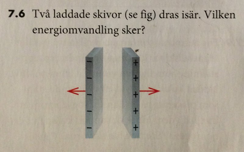 fylldmedfrågor skrev:Så vad det gäller 7.10 är spänningen i hela figuren densamma eftersom det är samma plattor vid båda utrymmena som utgör spänningen. Spänningen skapar i sin tur två fält som varierar på grund utav d (distans).