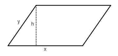 Låt beteckna vinkeln som sidan () bildar med basen (). För att det ska vara en parallellogram så måste vinkeln vara mellan och ; om vinkeln är så är parallellogrammet en rektangel. Med hjälp av vinkeln kan parallellogrammets höjd () uttryckas som