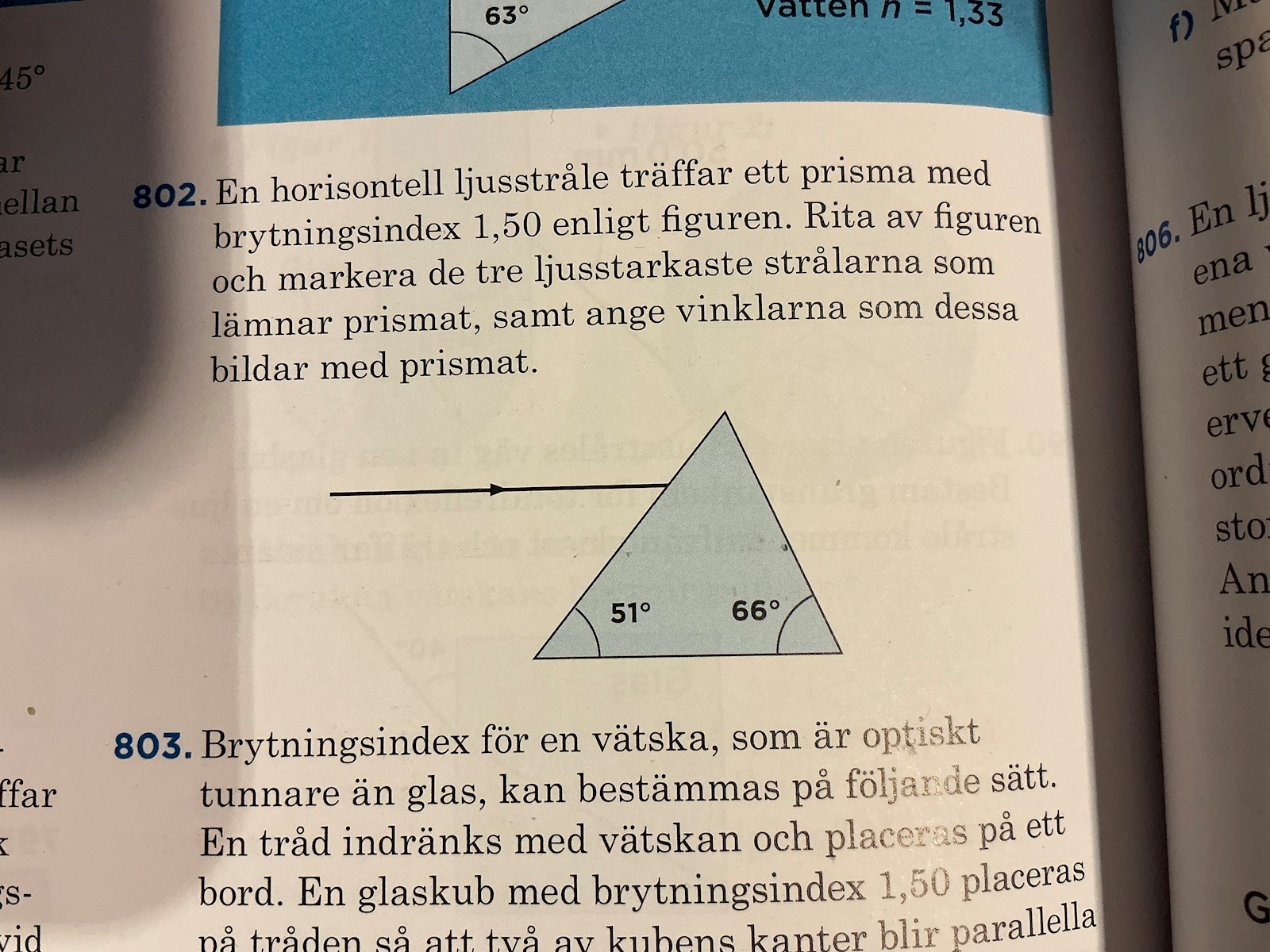 Men det gäller inte i detta fall. Ljuset kommer i prismat både att böjas och komma ut men samtidigt också reflekteras. Varför? Dvs. det går att hitta en brytningsvinkel.