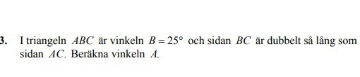 Har du löst ut något värde på vinkeln A? är den mer eller mindre än 25 grader?