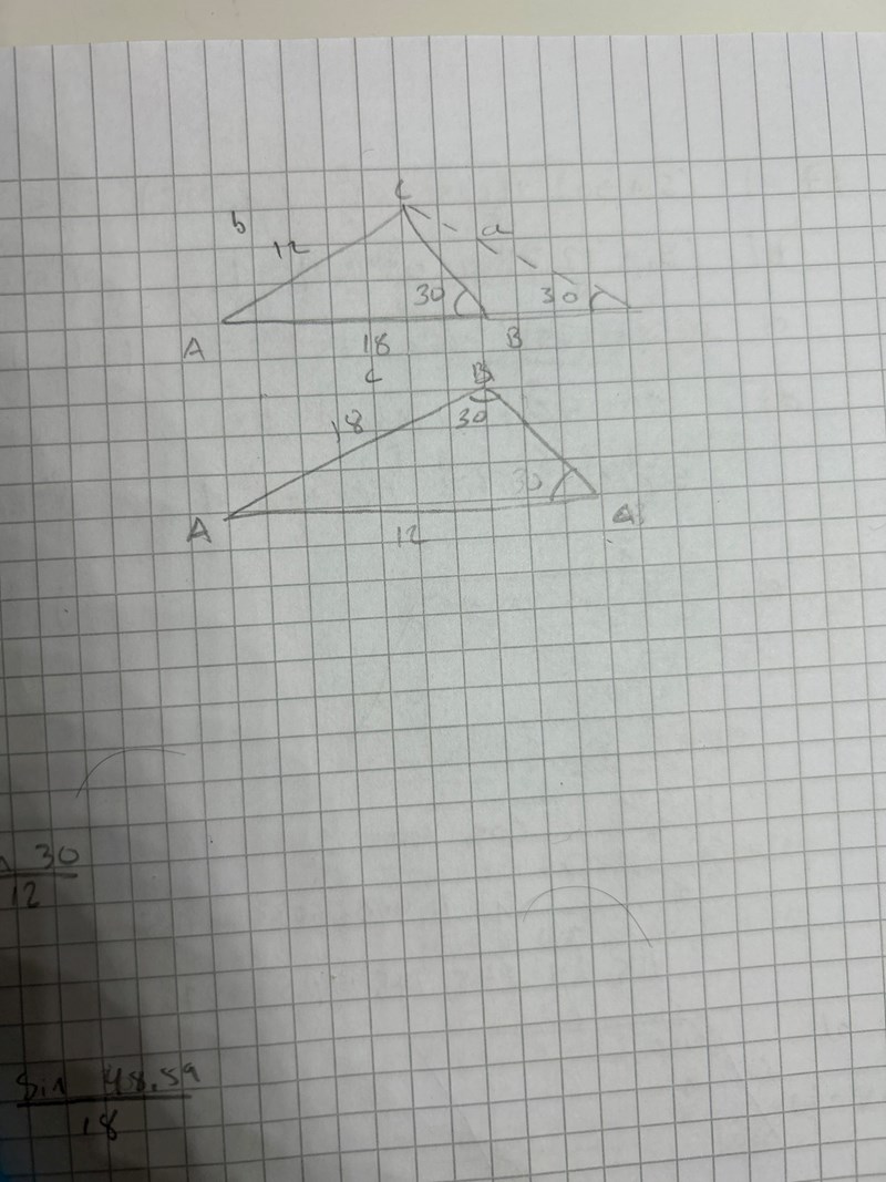 Hej, jag undrar över hur man kan veta eller om det finns en generell regel som beskriver när en triangel har flera lösningar för sinussatsen. Som i exempelvis följande fråga: