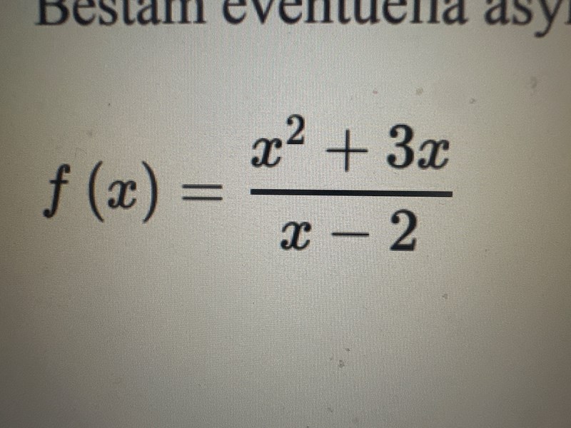 de uppgifter vi har blivit tilldelade är då en funktion som man ska bestämma asymptotererna, och man bestämmer då de om den andra asymtoten är horisontell eller sned. Och man ska göra detta utan att behöva rita upp någon graf