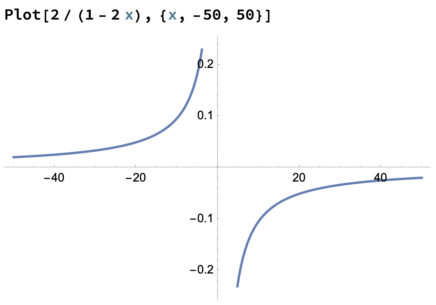Det är alltså en funktions Asymptot som kan vara sned inte funktionen. Den aktuella funktionen hade alltså ingen sned asymptot. Om vi t ex ändrar den till f(x)= 2/(1-2x) + x, så kommer |f(x)-x| —>0 när x—> oändl och då blir linjen y=x en sned asymptot.