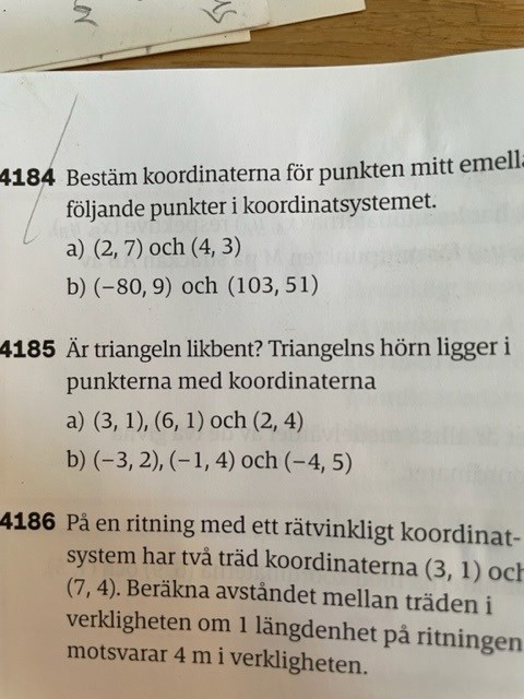 Jag har samma problem i nästa uppgift, 4187, och jag förstår inte alls hur jag ska börja. I denna uppgift står det att jag ska använda omvändningen av Pyth.sats för att avgöra om triangeln är rätvinklig. Triangelns punkter enligt ritning. Men det är helt obegripligt detta ju...