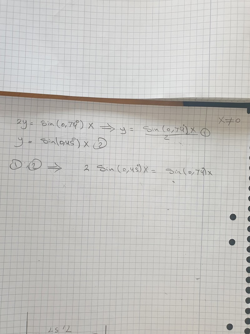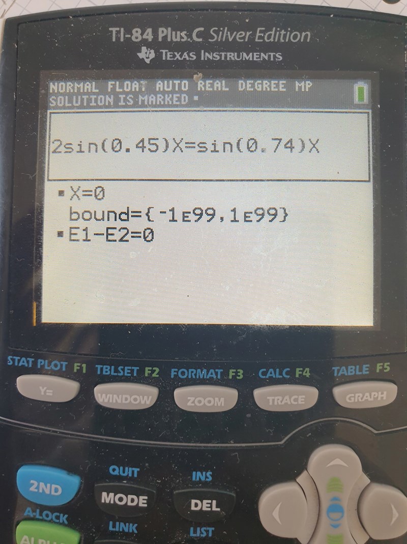 (2*sin(0,45°)-sin(0,74°))*x = 0