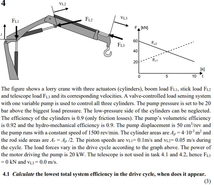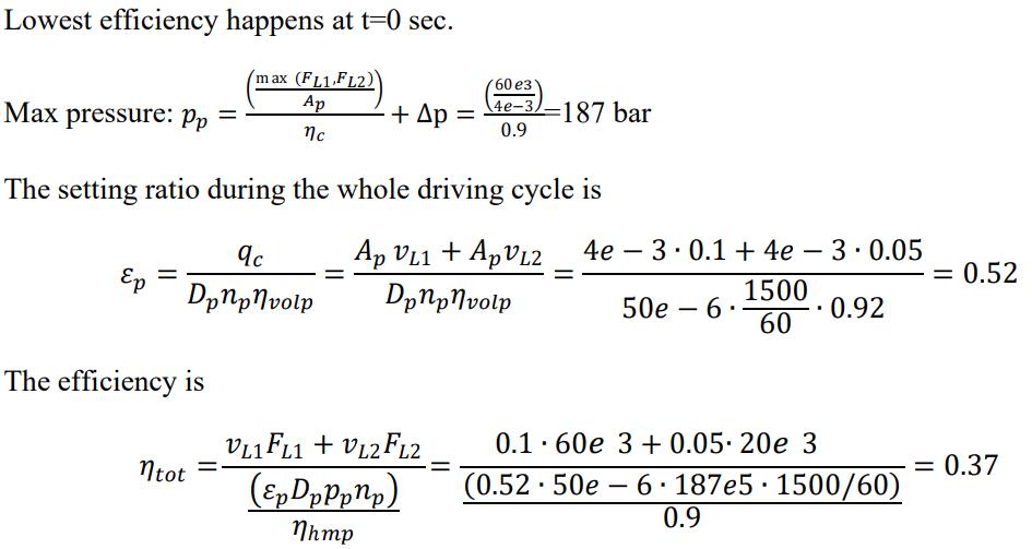 Verkningsgraden beräknas med . P_ut tänker jag är summan av de två cylindrarnas energi dvs . Jag är dock osäker på vid vilken tidpunkt jag ska ta krafterna i grafen. Dvs när har systemet lägst effekt. Logiskt sett tycker jag det borde vara vid 5 sek för pumpen behöver ju alltid leverera maximala trycket och i denna tidpunkt är det ju som lägst. Men enligt facit är det vid t=0s?