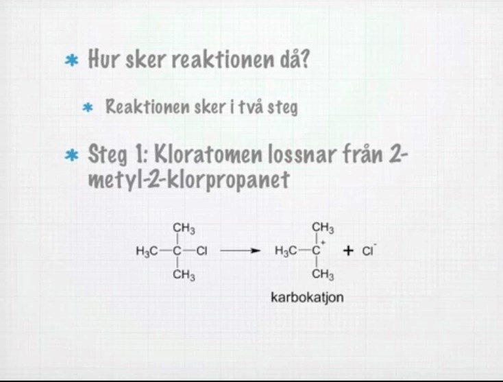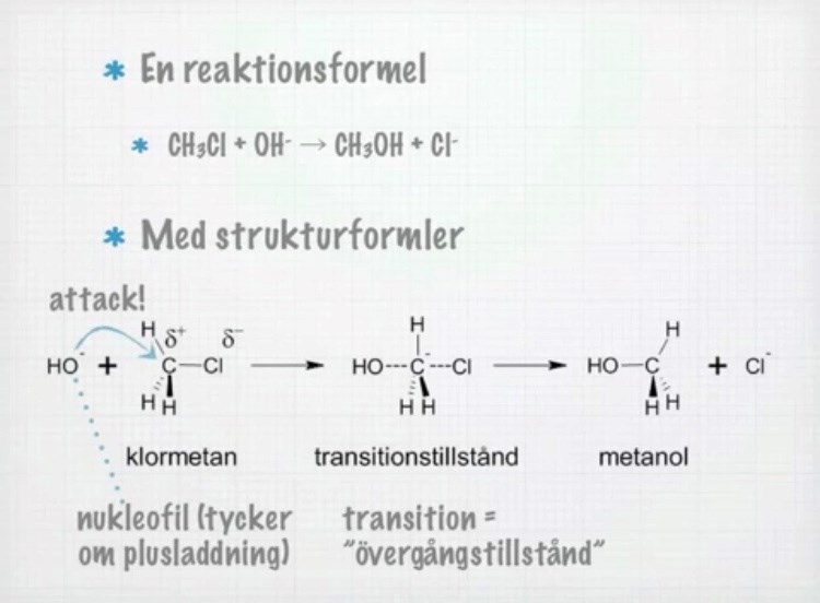 I den här reaktionen, varför blir kloret  negativt laddat? Är kloret i jonform från början? Eller tar den med sig ”bindningen” dvs både elektronen som kommer från sig själv och från kolatomen? Hur binder isf hydroxidjonen till kolet?