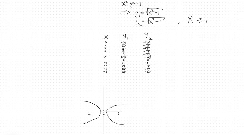 x2-y2 = 1 till att börja med. Rita i intervallet -5 < x < 5.