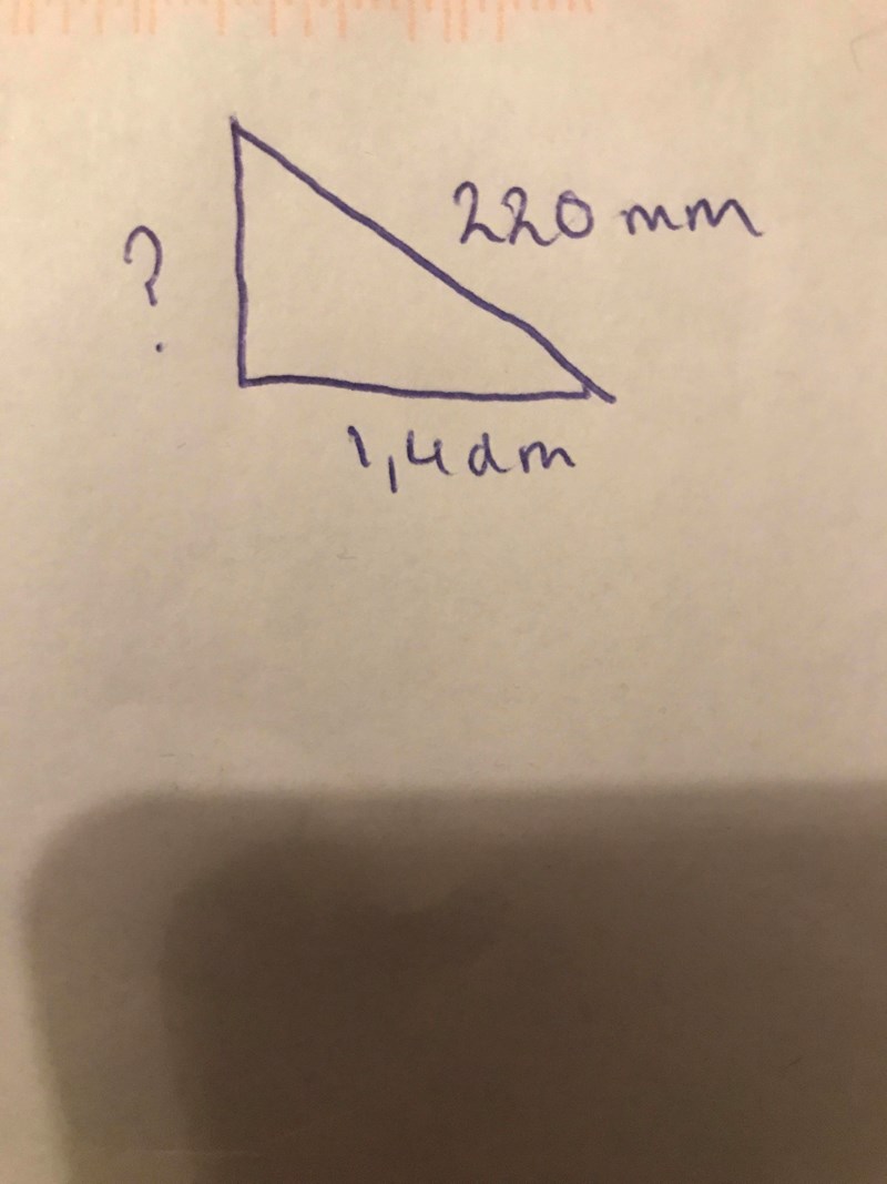 Hypotenusan på en rätvinklig triangel är 220 mm och bredden är 1,4 dm.