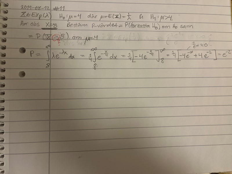 Jag förstår inte riktigt hur man ska komma fram till att ta P(x>8) istället för P(x<8). Är det alltid så att man testar för att värdet blir större? Har det något med att mothypotesen är nedåt begränsad att göra – att om X>8 så tyder det på ett större väntevärde som hänger ihop med ett större my?