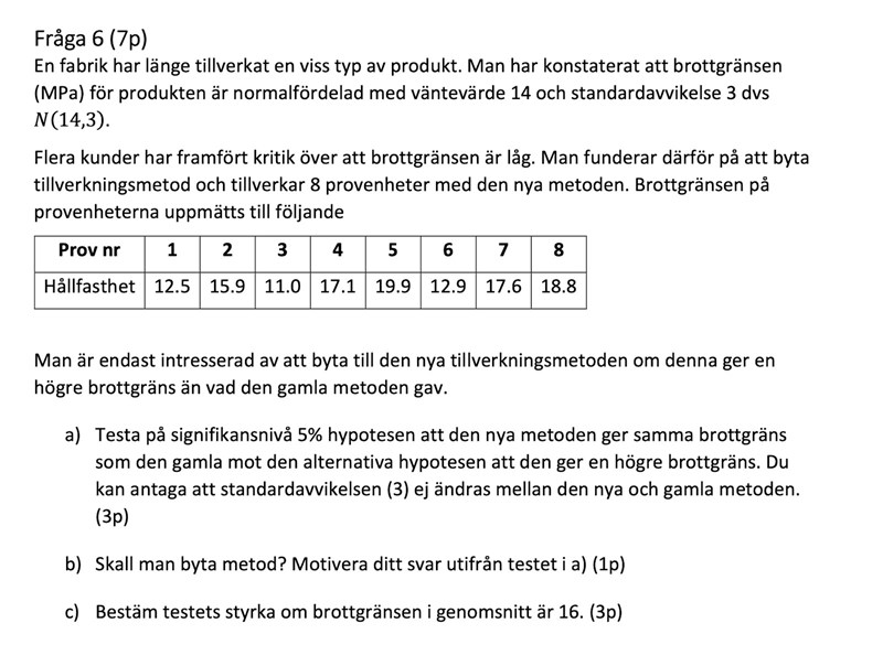 Uppgiften har tyvärr inget facit så jag är ganska osäker, men jag tror det är någorlunda korrekt. Jag har gulmarkerat saker som jag är lite extra osäker på, exempelvis hur jag ska tolka mitt k-värde, om H0 ska förkastas. Gällande c) är jag inte så osäker eftersom det verkar vara en ganska repetitiv procedur bara med olika siffror beroende på uppgift.