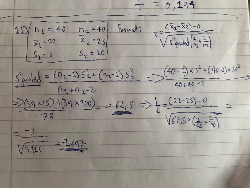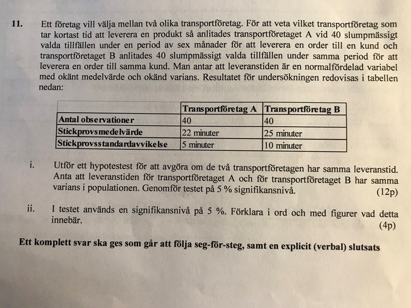 Hej! Jag har kommit fram till teststatistikan för differensen mellan två medelvärden och undrar härnäst hur jag genomför testet på 5 % Sig.nivå?