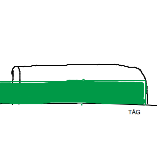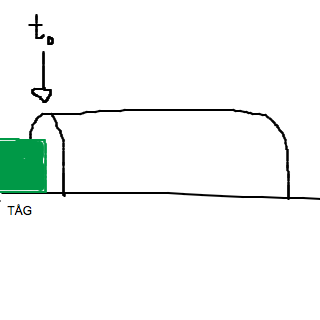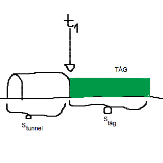 Tiden (och därmed sträckan) börjar när tåget (i grönt) åker in i tunneln. Kalla denna punkt .