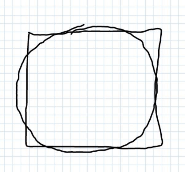 Enligt 1 vet vi att cirkeln är större än så, men den kan ju ändå vara mindre än kvadraten, den måste inte vara jättestor.