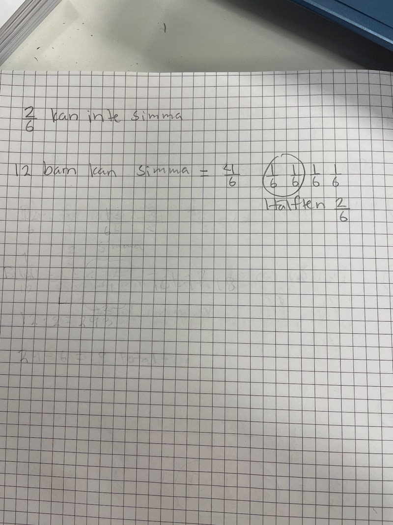 jag har försökt lösa denna och jag vet 2/6 är 4/6 kvar till en hel. Det är det enda jag vet. Kommer inte längre än såhär.