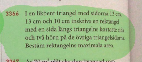Kan du hitta ett uttryck för rektangelns area som innehåller bara x?