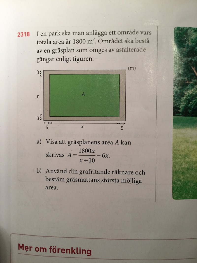 I figuren är   x   och   y   lång-  resp. kortsida på gräsplanen, så  xy < 1800.