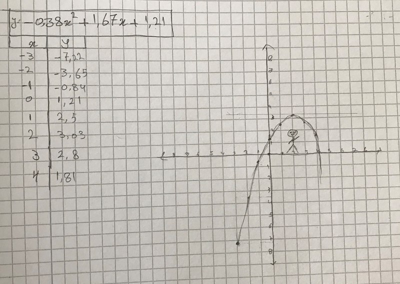 Om jag förstÄr bra det bör vara sÄ!? Personen Àr 2m lÄng och största minipunkt pÄ y=3,03. men enligt den vÀrdetabell.