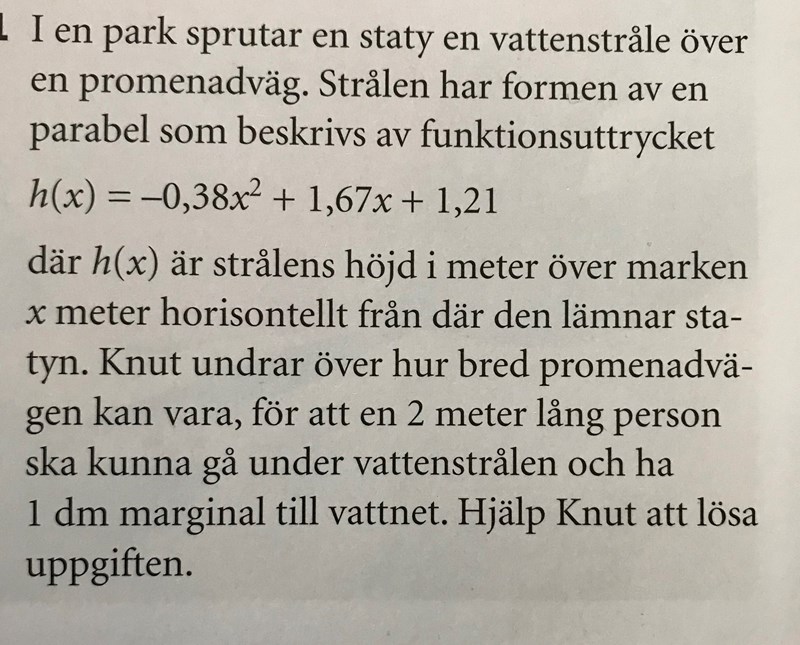 För att fÄ x-vÀrdena för punkterna 3 och 4 i bilden nedan, dÀr vattenstrÄlen Àr