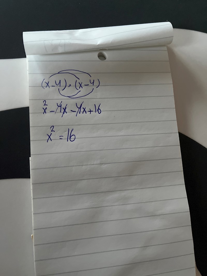 Prova om (x-4)(x-4) = x2+16 stämmer för x = 4.