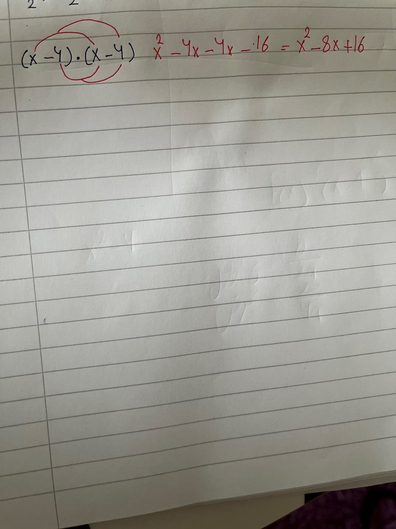 Multiplicera ihop (x-4)2 på ett korrekt sätt.