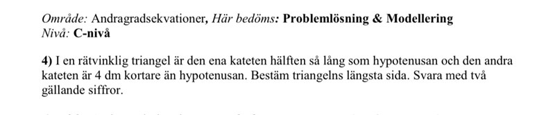 I en rätvinklig triangel är den ena kateten hälften så lång