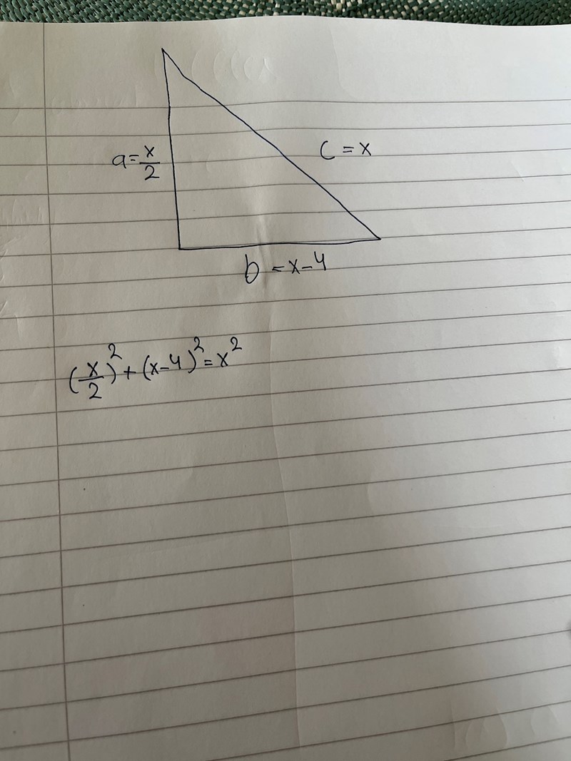 x^2 = (x-4)^2 + (x/2)^2