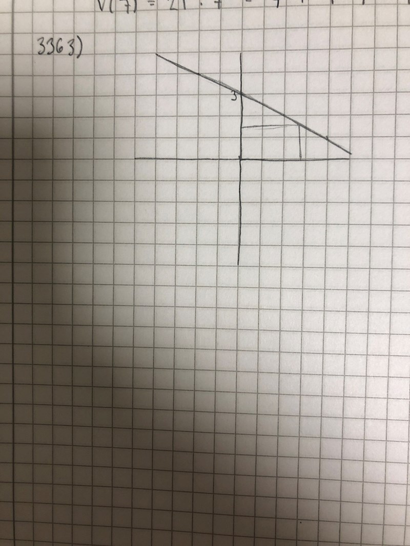 kordinaten på punkten vid hörnet och den sneda linjen måste vara (x, 3 - 0,5x)