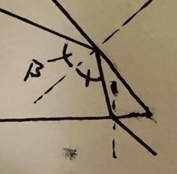 Jag har ritat det här, men kommer inte på något samband för att kunna bestämma infallsvinkeln med hjälp av beta-vinkeln
