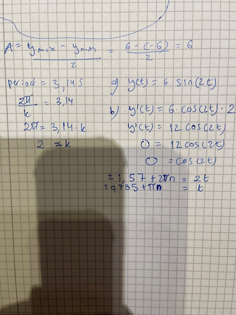a) bestäm en funktion y(t)=A.sin(kt) m sombeskriver bojens läge somfunktion av tiden i sekunder.