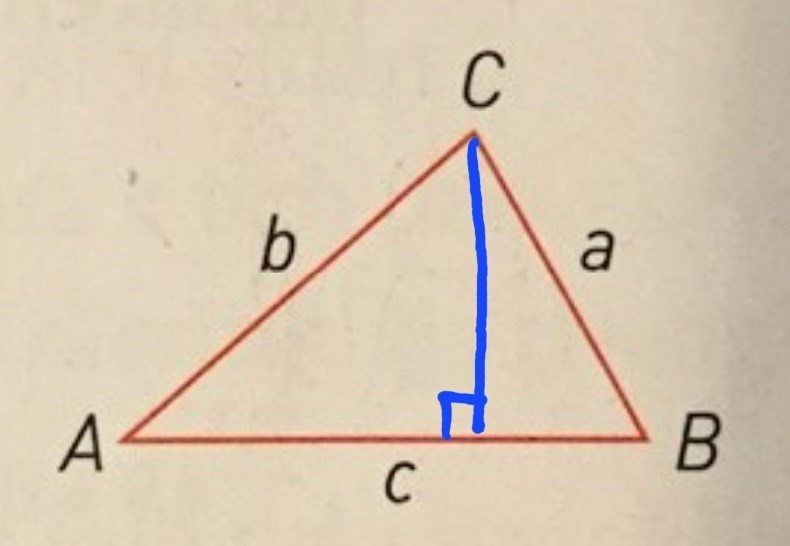 "Höjden mot sidan AB" är den höjd som går från hörn C ner till sidan AB. Den är alltså vinkelrät mot sidan AB.