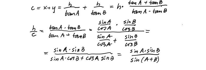 h = (c*sinA*sinB)/(sinAcosB + cosAsinB)