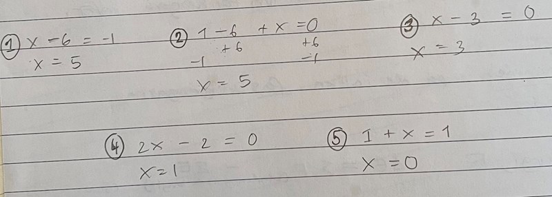 1 stämmer, 2 stämmer, 3 stämmer, 4 stämmer, 5 stämmer inte - du borde ha fått ekvationen x+4 = 1.