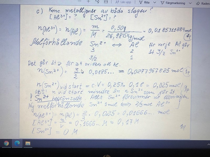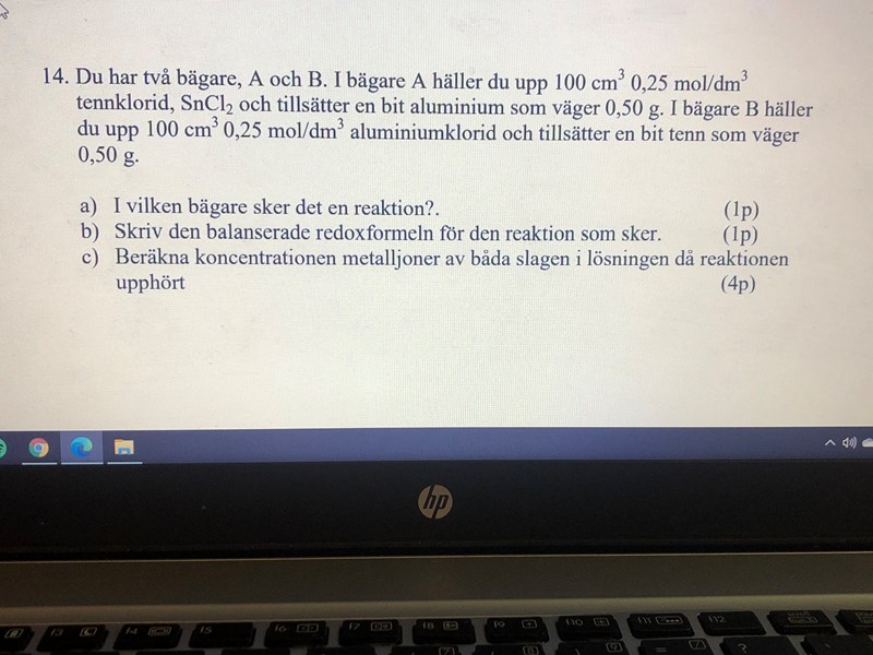 I vilken bägare sker det reaktion? Skriv redoxformlen, beräkna