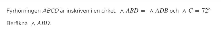 Rita ut en fyrhörning inskriven i en cirkel. Välj ett hörn som du kallar A. Hörnet bredvid medurs är B, nästa hörn medurs är C, och det sista hörnet är D.