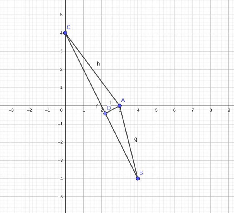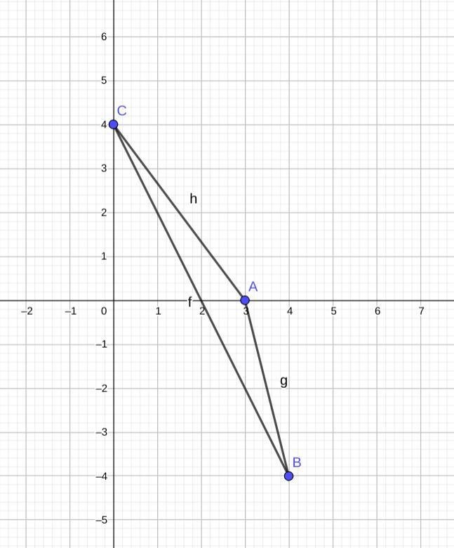 Triangeln ABC har i ett koordinatsystem hörnen i punkterna A = (3, 0), B = (4, −4) och C = (0, 4). I vilken punkt skär höjden från hörnet A motstående sida?