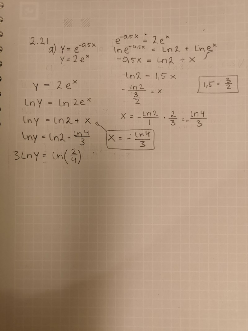 Viktigt att veta att om du har så tar "ln" och "e" ut varandra då de är inverser och för att ln(e)=1 så då blir bara det i exponenten kvar. ex.